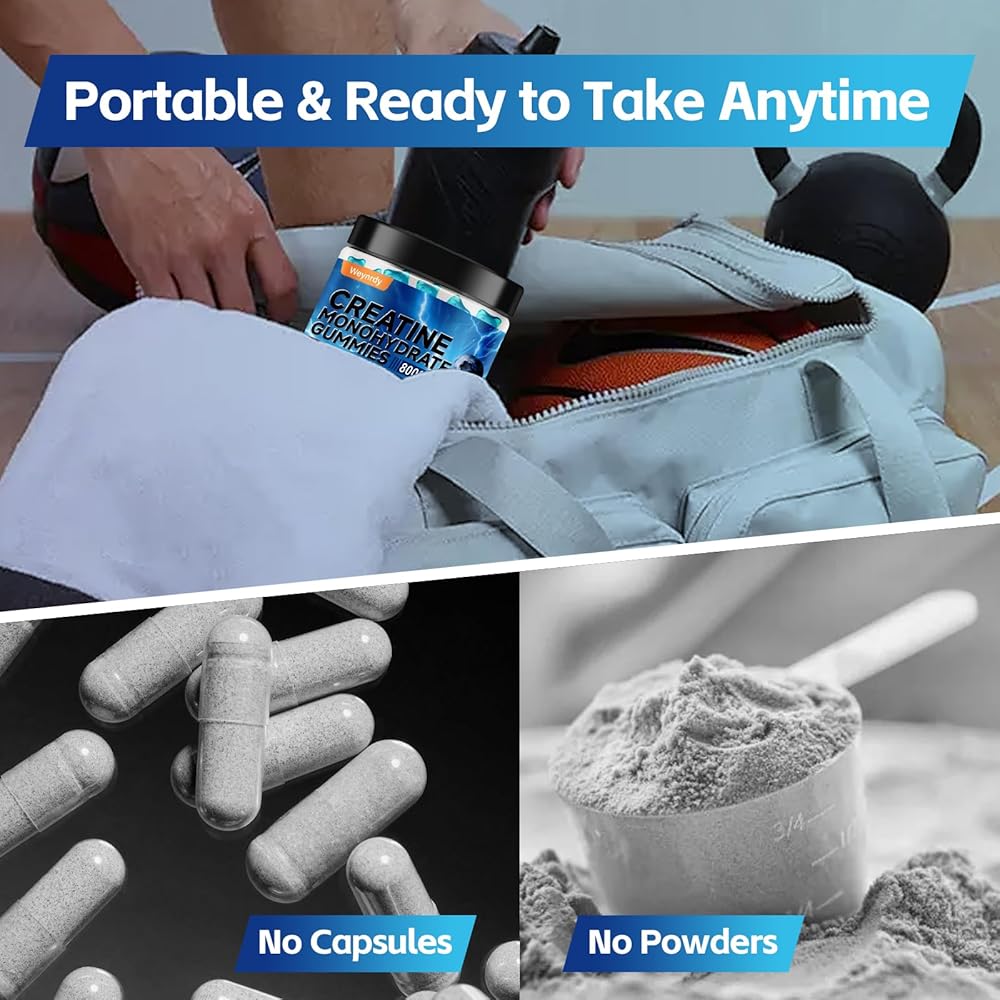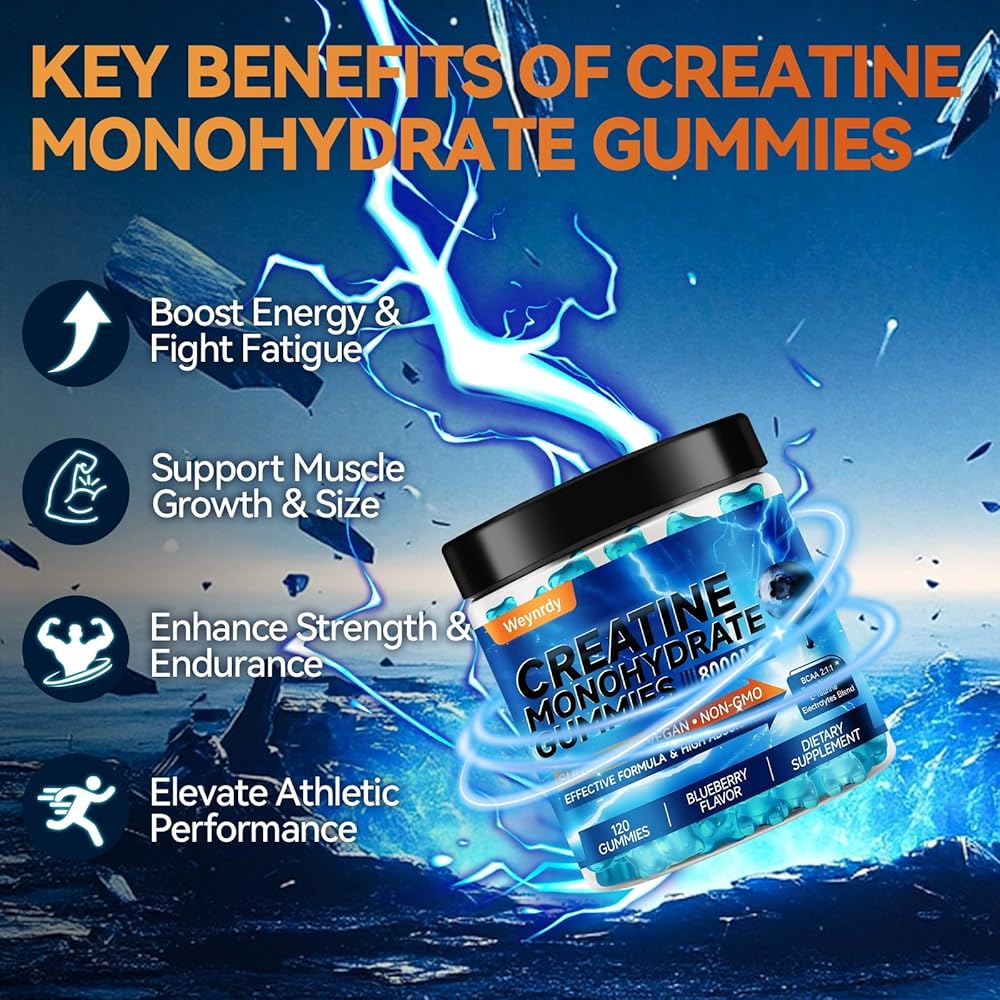 Sugar-Free, Natural & Delicious: This creatine gummy is sugar-free, gluten-free, and vegan-friendly, crafted with natural pectin and infused with blueberry extract. It features a soft, non-sticky texture that's easy to chew and highly absorbable, suitable for both men and women. Enjoy a great-tasting way to meet your daily nutritional needs for fitness support