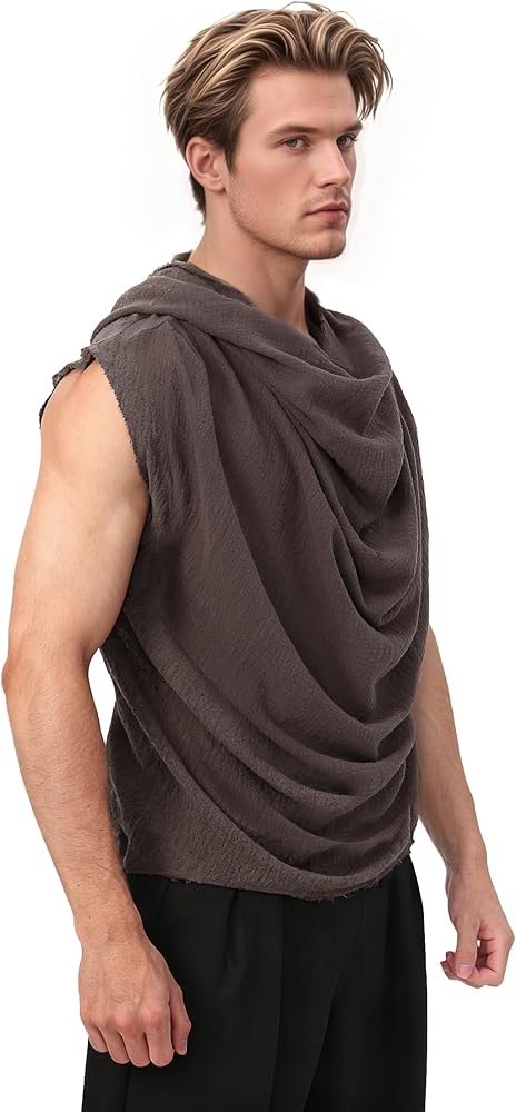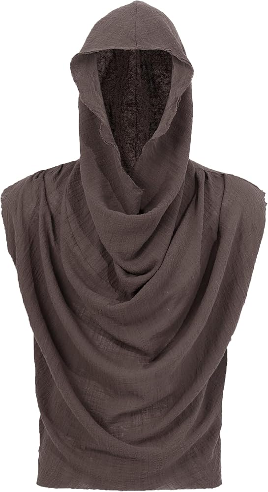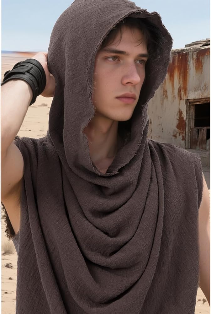 Post Apocalyptic Mens Hooded Top Apocalyptic Sleeveless Vest Medieval Vintage Retro Shirt Renaissance Clothing Costume