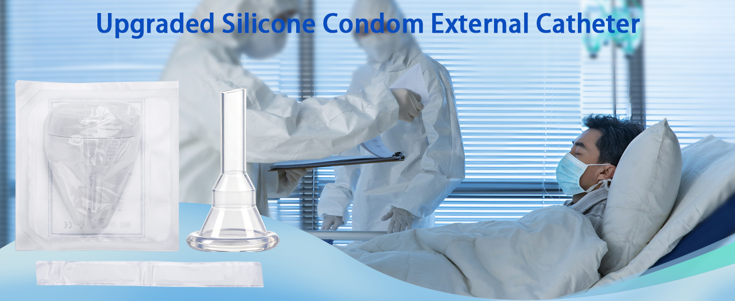 Silicone Condom Catheter: Made with softer, thinner, and more elastic silicone, a secure fit, and non-irritating. Matching the silicone fixing strip effectively prevents urine from spilling out. ideal for overnight /all-day wear — lightweight comfort condom catheters for elderly men aged 80