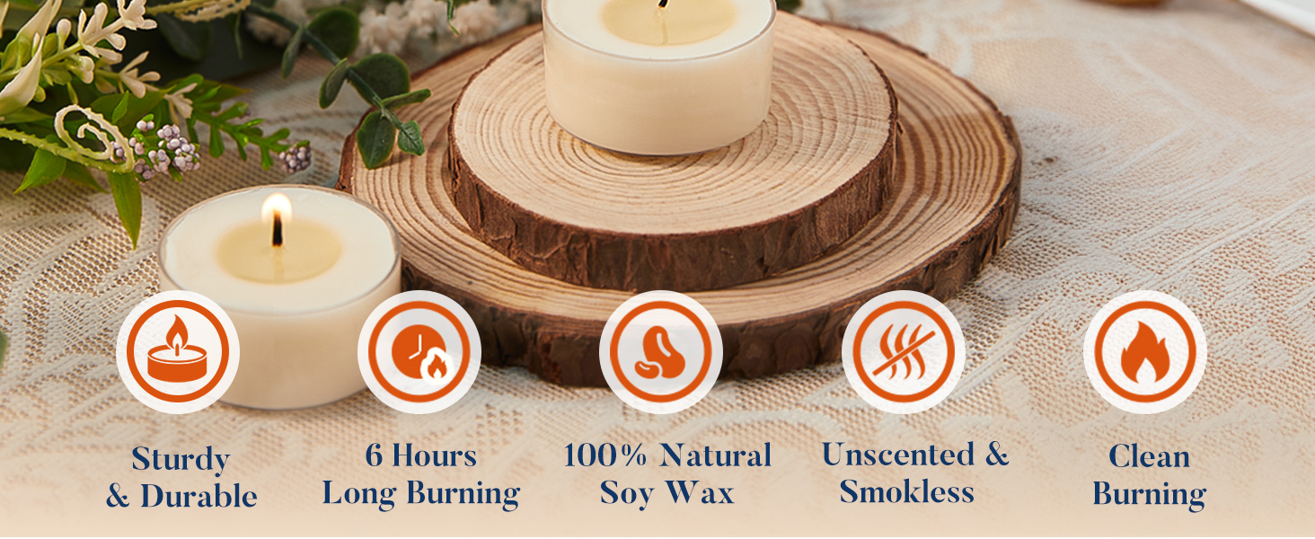 Bulk Value Pack: This 100-pack of premium soy tea lights delivers a full 6 hours of steady consistent light per candle—ideal for decorative and emergency use while offering exceptional value