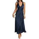 Design: Sexy deep v neck satin dress with charming backless sleeveless design that catches the eye, designed for formal summer wedding guest events/ cocktail parties/ bridesmaid duties. Reinforced inner lining prevents slipping while the stretch satin construction moves with your body - making it both a confident cocktail dress and sophisticated evening gown. The hidden side zipper design makes it convenient to put on and take off.