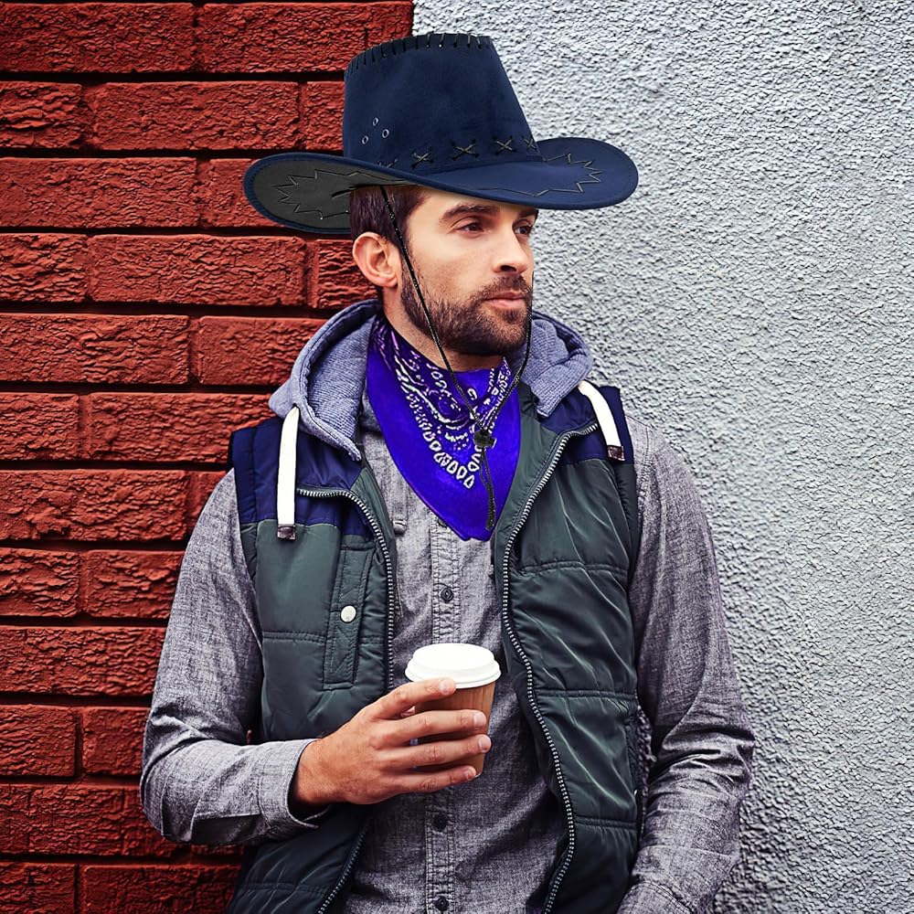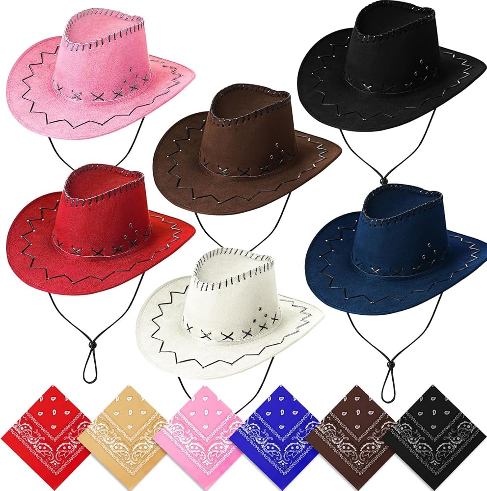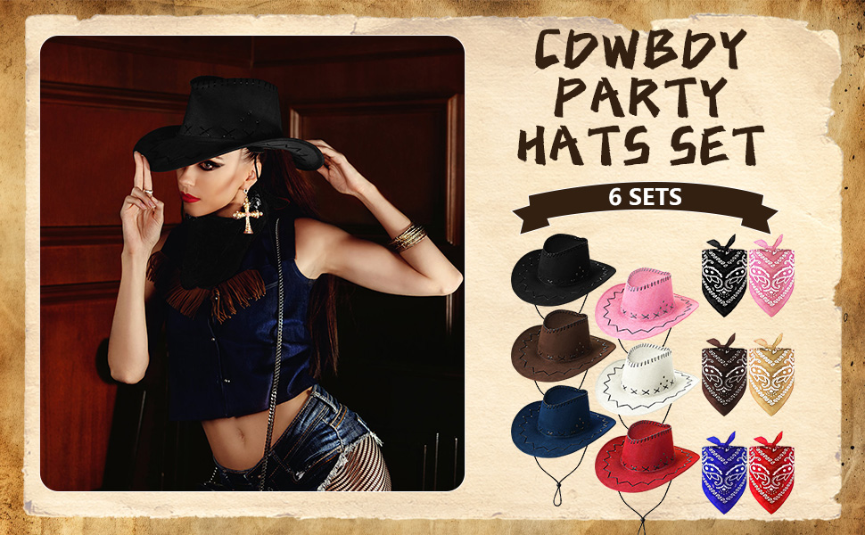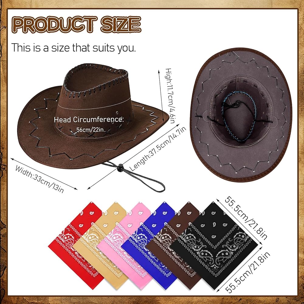 Cowboy Hats and Bandanas Set: there are 12 pieces of things, including 6 pieces of cowboy hats and 6 pieces of bandanas for men coming in different colors, and the quantity is enough to meet your daily use and replacement.