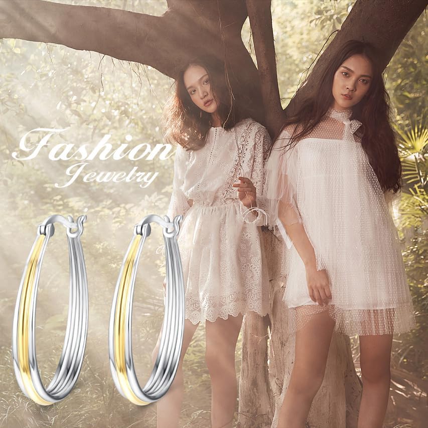 ♥ DESIGN IDEAL: Hoop Earrings Meet the concept of fashion,added a hit color element combine yellow gold and white gold,you can catch people's eyes in any situation if you wear it