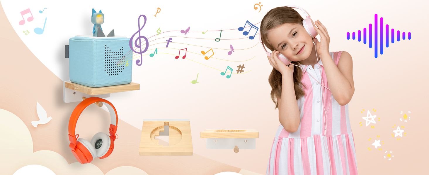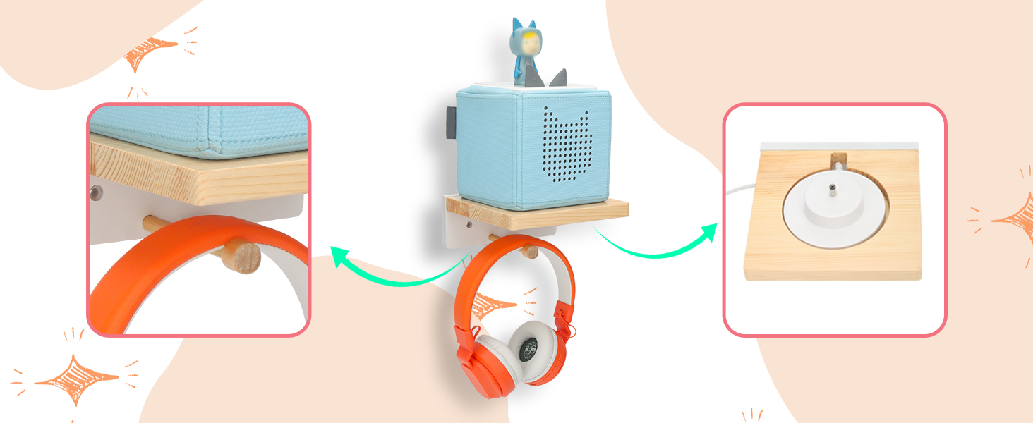 【Wooden shelf 】Shelf for Tonies Starter Set is designed for Toniebox ,Headphones and Charging Station .