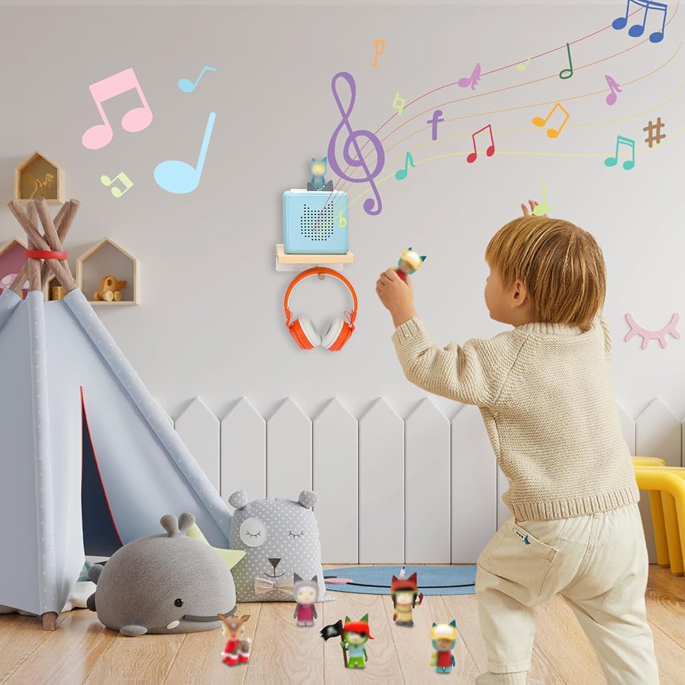 【Keep the Room Tidy】The floating shelves can hold the tonie box well, the box charger can also be nicely embedded in the shelf, the room looks organized.