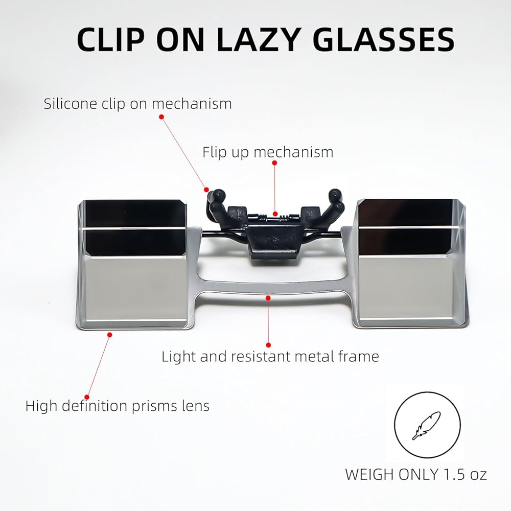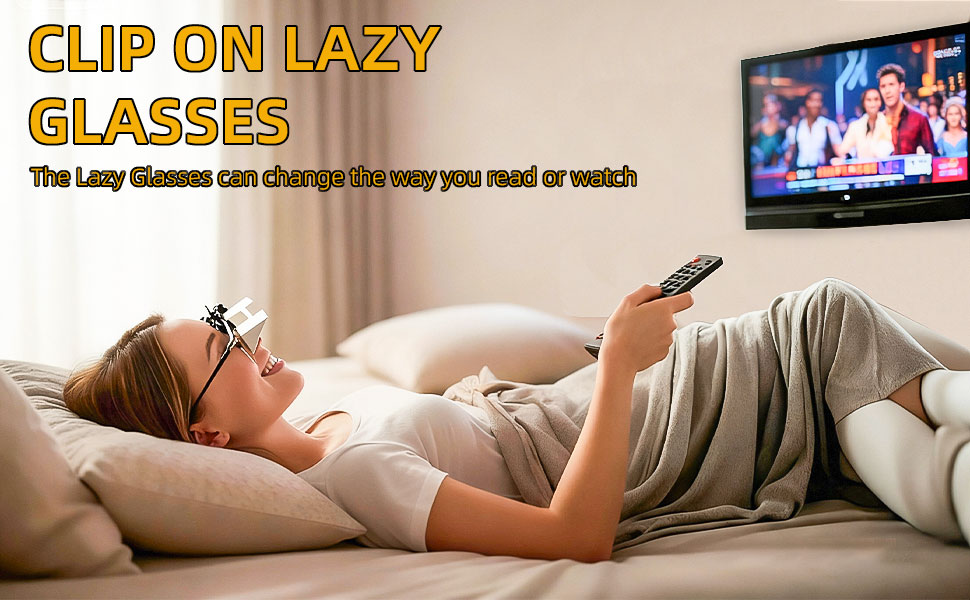 Clip on Lazy Glasses, Horizontal Reading Glasses, 90°Vision Prism Glasses for Lying Down Reading or Watching TV,Knitting Up Neck Relax,Neck Protection Glasses