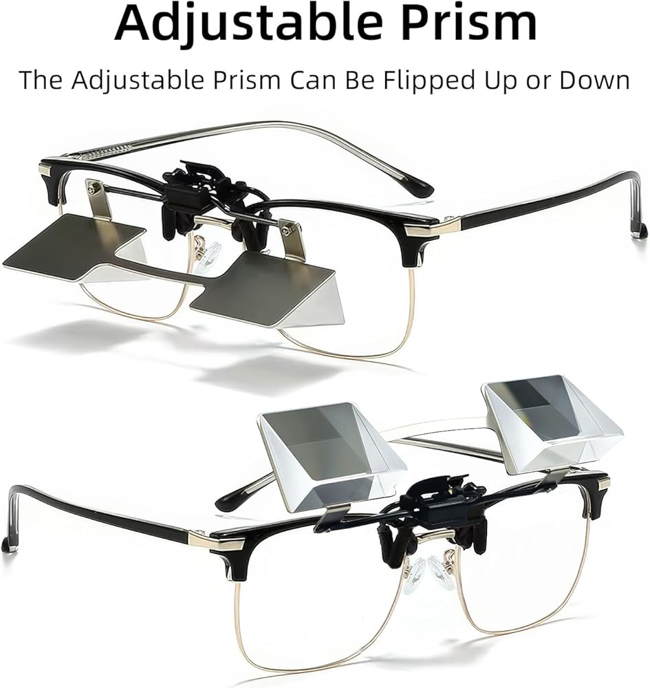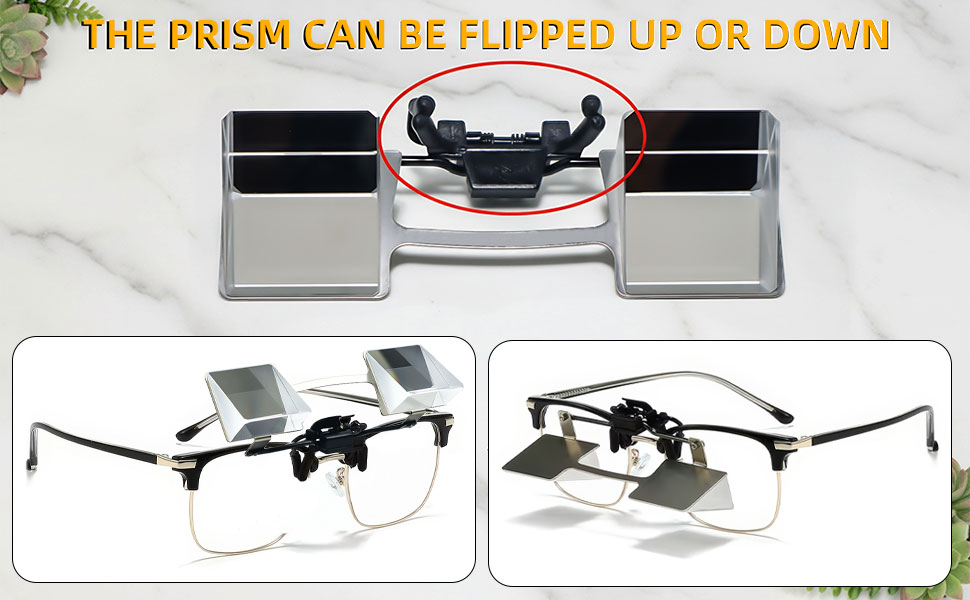 Adjustable Prism:The adjustable prism can be flipped up or down, allowing instant switching between a 90 degree downward-view mode and your normal vision mode.the UP & Down system allows you to change the glasses position at any time with one hand