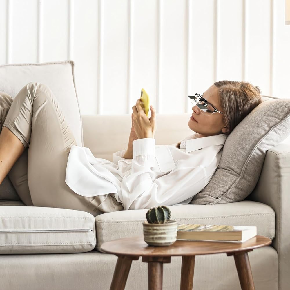 Protect Your Cervical and Lumbar Spine:Our lazy reader glasses use optical glass prisms to flip your gaze down 90 degrees. After wearing horizontal reading glasses, we can read without looking down or bending our cervical spine. We can also lie on the sofa or bed reading Kindle/books, watching TV/ browse mobile phones. Reduce the pressure on your cervical and lumbar spine, and protect your health!