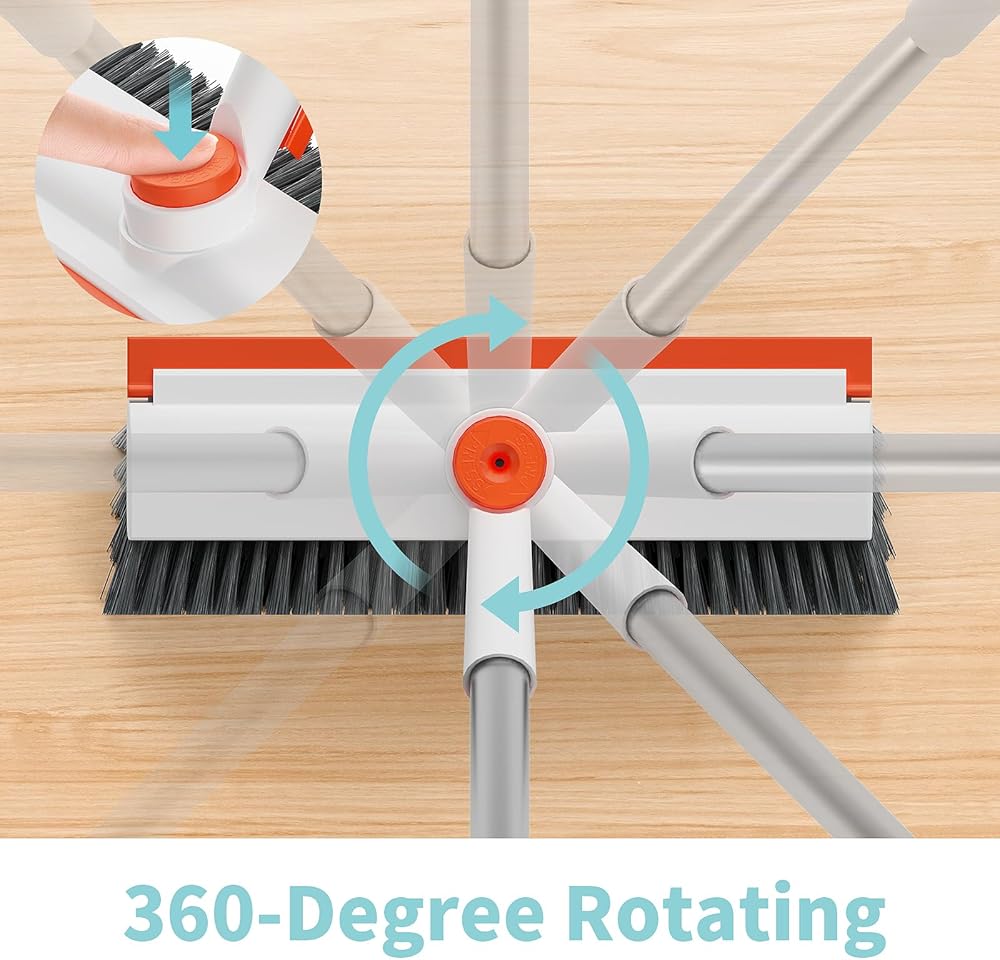 🛁【Effortless Cleaning with 360-Degree Rotating Head】: Our floor brush features a 360-degree rotating head, making it a breeze to clean every nook and cranny. Designed with ergonomics in mind, it ensures comfortable use whether you're using the brush or the scraper. Easily clean bathroom walls and hard-to-reach corners with this versatile tool.
