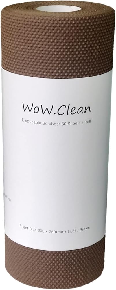 WoW.Clean Disposable Scrubber 60 Sheets, Daily Disposable Scrubber, Dish Towel, Multipurpose for dishwashing, House Cleaning and Camping (Brown)