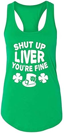 St Patrick's Day Shut Up Liver You're Fine Funny Drinking Irish Women Tank Top - Green New