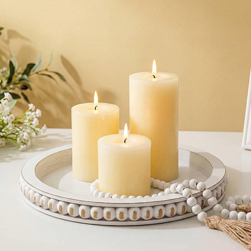 Hanobe Decorative Tray for Home Decor: Round Wooden Candle Holder Tray for Coffee Table - Rustic Farmhouse Table Centerpiece for Home Living Room Kitchen Corner Organizer