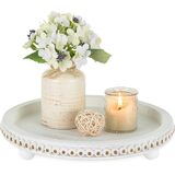 Versatile Style: With a rustic distressed finish and boho bead string, this washed-white tray complements farmhouse, vintage, modern, and bohemian décor, seamlessly blending into various interior styles.