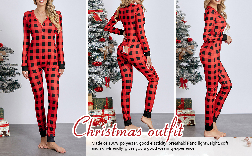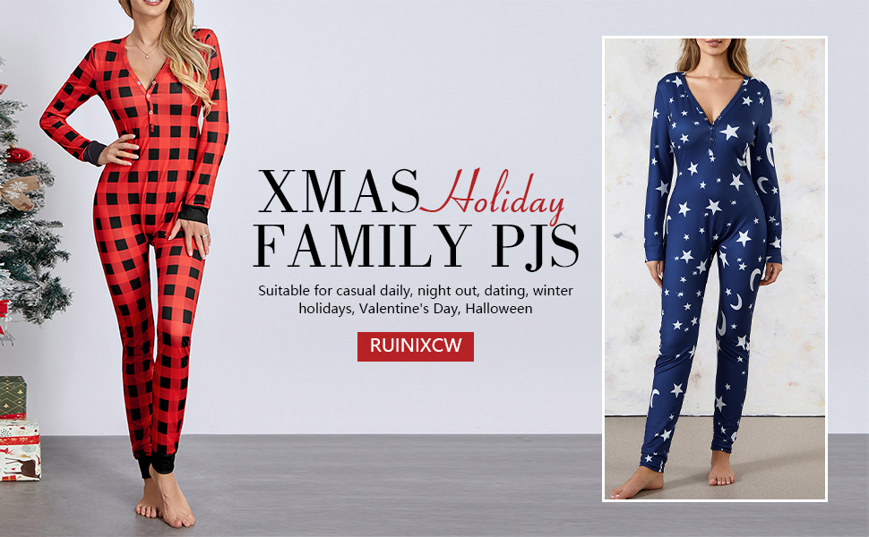Design: Onesie pajamas for women features crew neck, long sleeves, classic stripes print, button down jumpsuit with cute decorative print on the hip, women one piece novelty Christmas pajamas will make the festival atmosphere colorful