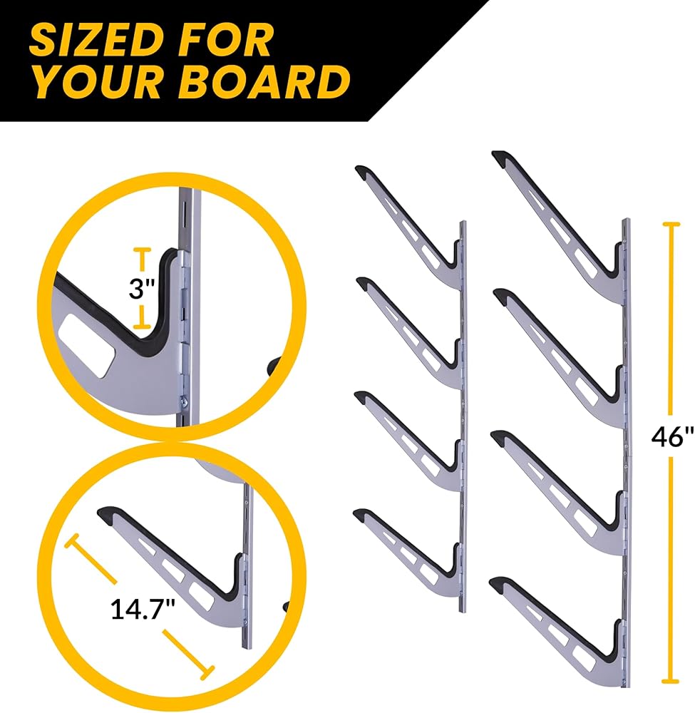 - Space Saver - Store your boards & accessories and utilize the space in your garage or stock room.