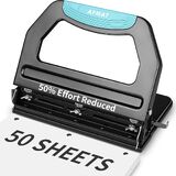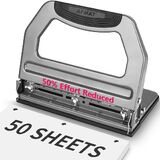 【50% Effort Reduced 3 Hole Punch】: Utilizing the principle of leverage, our innovative design ensures that the effort arm is significantly longer than the load arm. This translates into effortless punching, saving you 50% of the force required compared to non-ergonomic models.