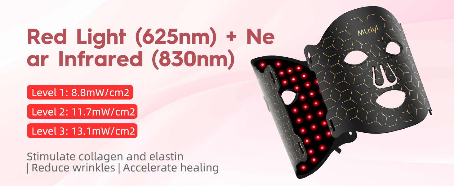 【7-Color Mode Led Mask Light Therapy】:Features 3 spectral brightness modes: Red light (625nm) + Near-Infrared light (830nm), Blue light (460nm), and Green light (520nm). Offers 7 light options including Red, Blue, Green, Yellow (630+520nm Mixed Light), Purple (460+630nm Dual-Peak Light), Cyan (460+520nm Mixed Light), and White (390nm).