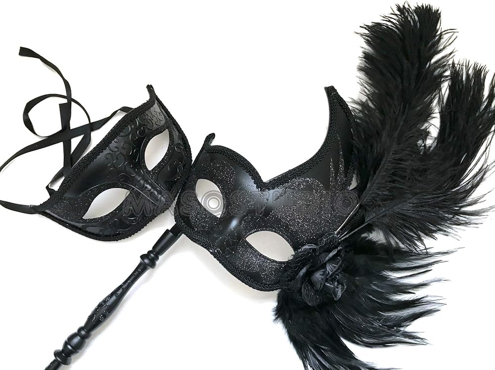Measurement: Measuring 7"X3" excluding feather, this mask ensures a snug and secure fit for most face shapes and sizes, providing optimal coverage and comfort throughout your daring escapades, the detachable stick for the womens mask is about 12" long.