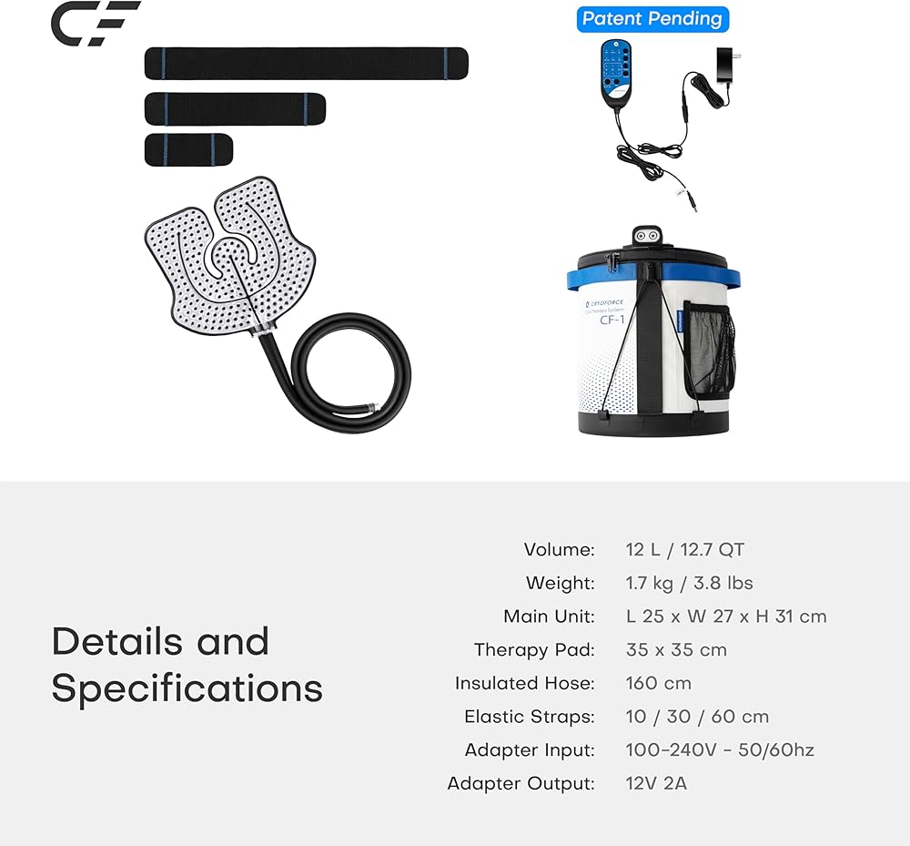 Whisper-Quiet Operation for Undisturbed Sleep Powered by a durable industrial-grade pump, the CF-1 operates quietly from bedside distance. No loud buzzing or vibration—just calm, consistent cooling that won't interrupt sleep during overnight recovery. Ideal for overnight recovery, naps, or post-workout relaxation.