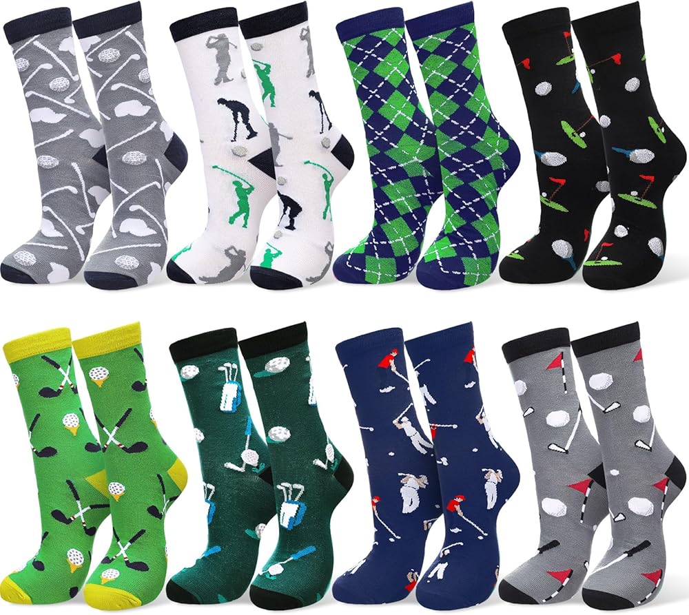 • Fun Combination: contains 8 pairs of men's golf socks of different styles, which meet the needs of daily replacement, spare and sharing, and bring various choices for golf enthusiasts, it can also use as a Valentine's Day gift for golf lovers.The gift box is not included