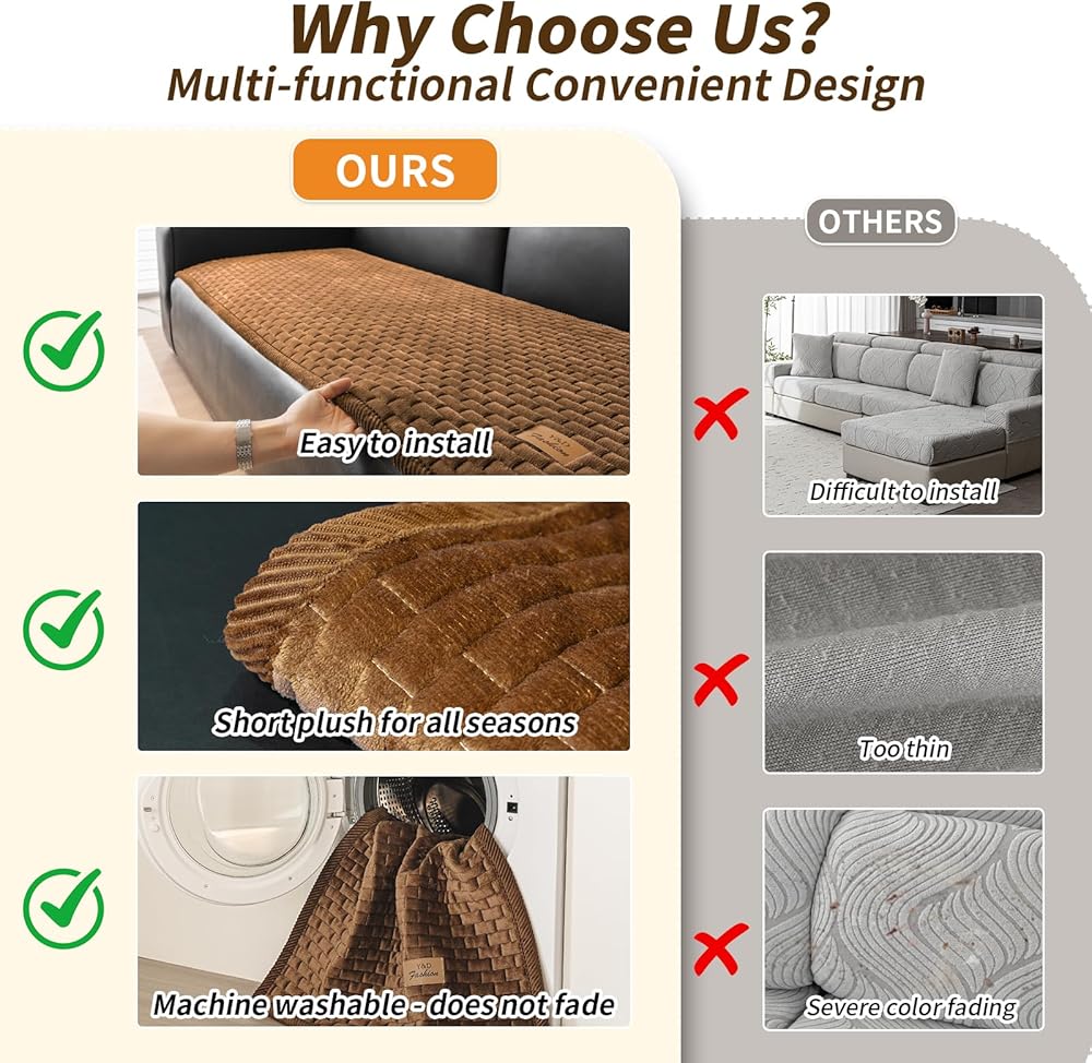 Various Colors and Sizes: Our funny fuzzy pet couch covers for sofa offer five colors to easily match your home decor(beige white, dark brown, light brown, dark gray, light gray).Plus, 27.6"x27.6" couch covers for dogs fit for backrest,armrest and single seat, 27.6"x59.1" /27.6"X70.9" dog couch cover fit for 2 seater sofa or loveseat, 27.6"x82.7" pet couch cover fit for 3 seat sofas,27.6"X94.5" pet sofa cover fit for 3-4 cushion couch.Please note:sofa covers are sold separately, not a set.