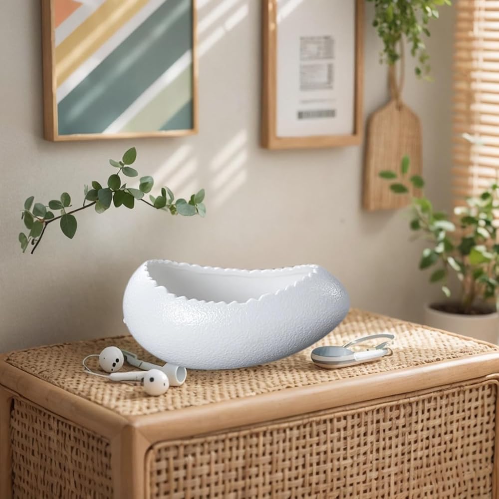 ARTISTIC HOME DECOR PIECE Features a unique cracked eggshell design that adds minimalist artistic charm to kitchen countertops, dining tables, office desks, or entryway consoles as decorative storage.