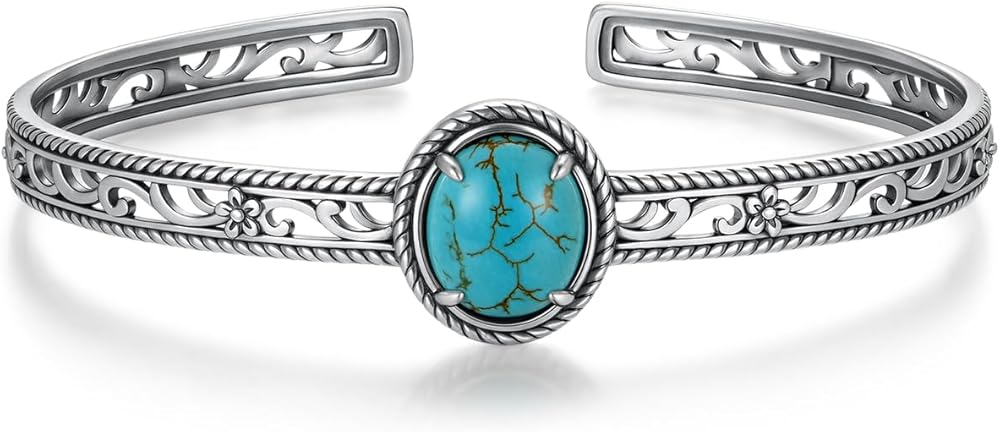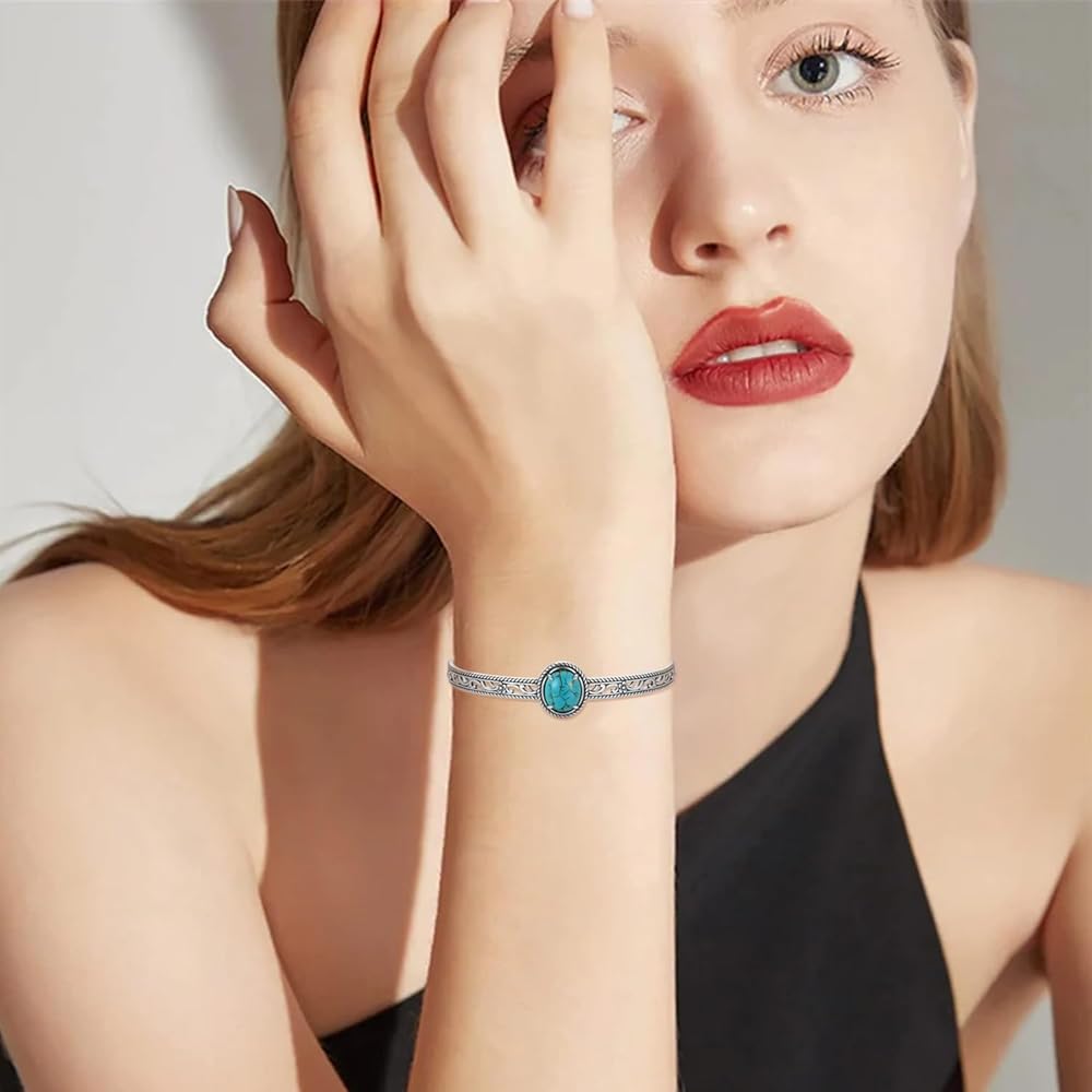 Turquoise Bracelets for Women Material: Crafted from 925 sterling silver and adorned with natural turquoise, this turquoise jewelry for women is designed with an oxidized finish for a rustic yet refined look. nickel-free, lead-free, cadmium-free and hypoallergenic, which will not damage your skin. ideal western jewelry for women daily wearing.