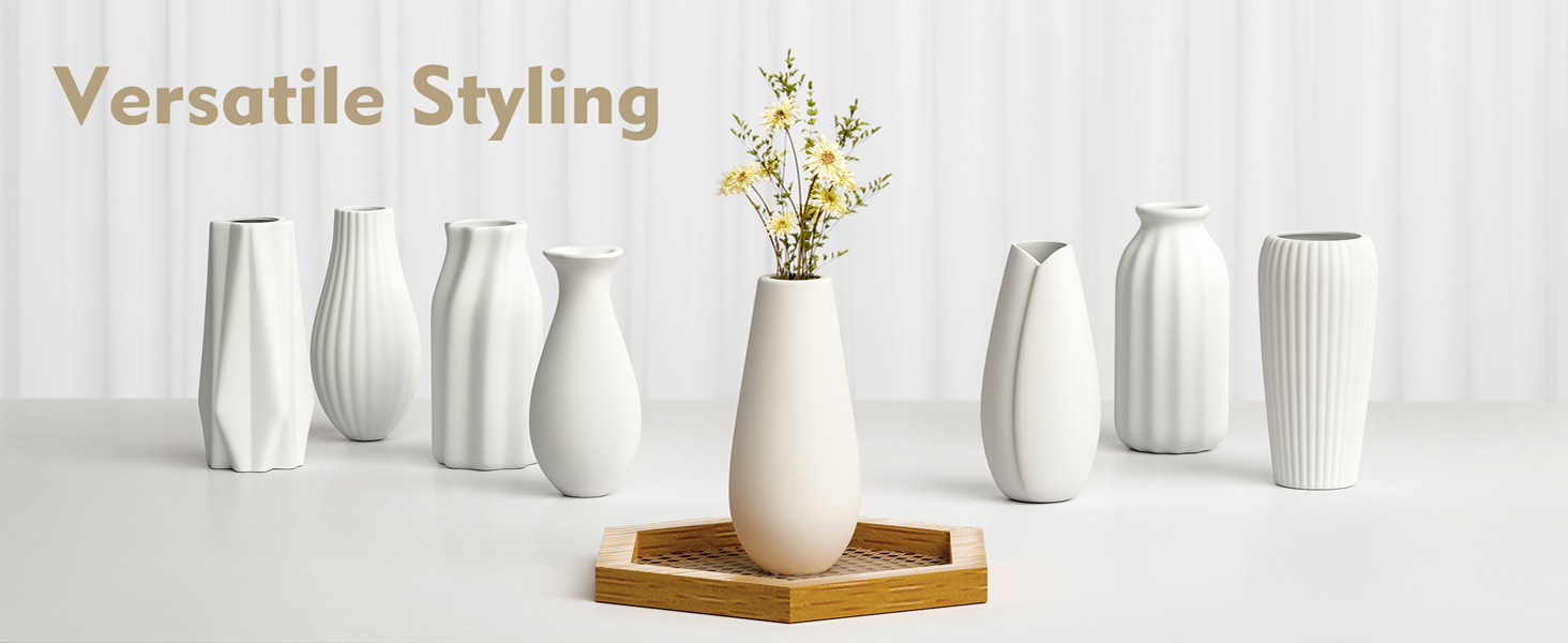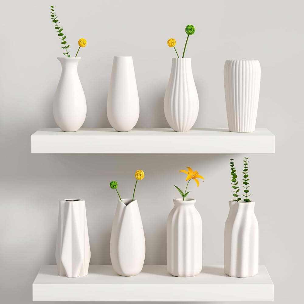 【Multipurpose】 Small white vase works as flower vases for bouquet, or flower vases for centerpieces. Perfectly sized for any space, it enhances dining tables, living rooms, bedrooms, offices, restaurants, kitchens, hallways, floating shelves, and reading nooks. Ideal vase for flowers for showcasing tulips, pampas grass, eucalyptus, or other floral arrangements