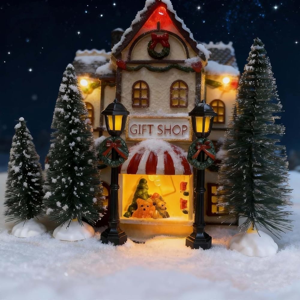 The Christmas light up village houses have exquisite craftsmanship and excellent quality, design with LED micro lights, provide nice and warm light, create a romantic atmosphere for your Christmas.