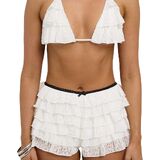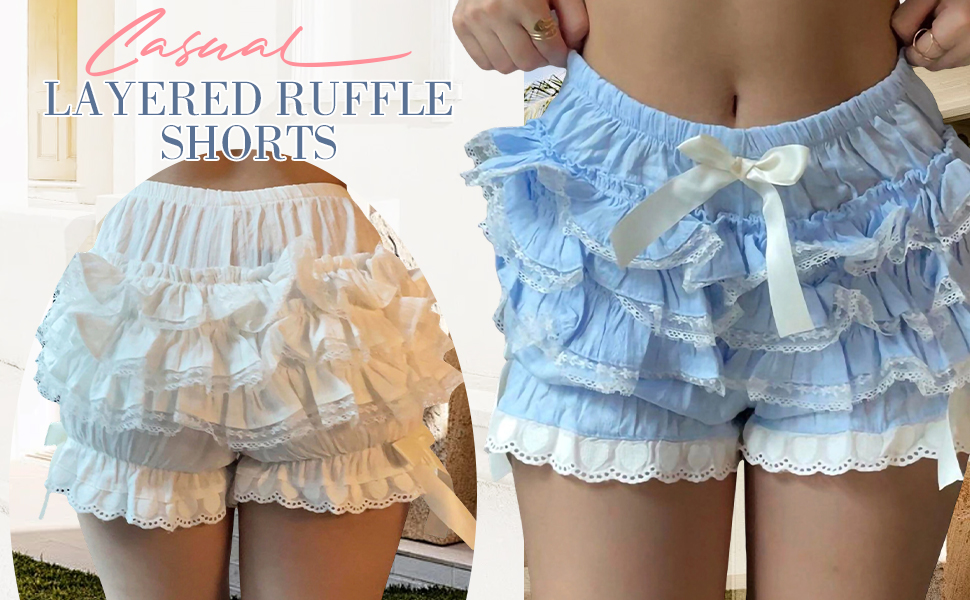 Material: Women's layered ruffle trim lace shorts is made of 100% Polyester material, which is soft and skin-friendly, light and breathable, not see through, provides a comfortable wearing experience, perfect for all seasons and all-days wear