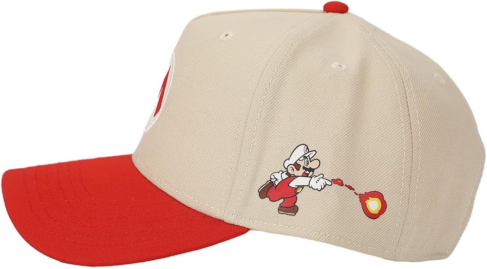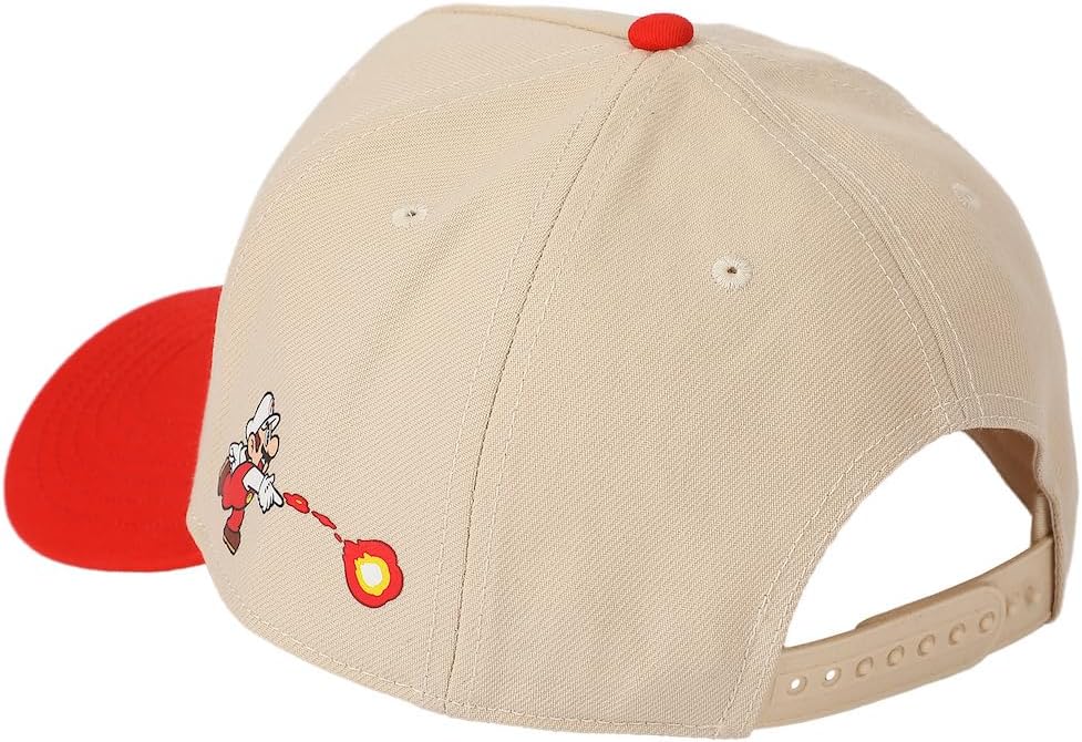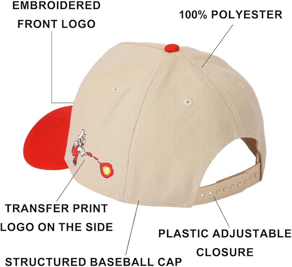 Level up your look with this white Super Mario Bros retro grandpa snapback hat. Featuring a red bill and Mario's embroidered logo on the front along with side art, this hat delivers iconic gamer style. Made with polyester, it provides comfort and durability for everyday wear while the plaatic adjustable closure ensures a secure fit. Hand wash it in cold water and lay it flat to dry to keep it looking great.