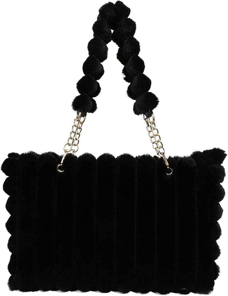 Structure: This plush bag features a zipper closure for easy opening and closing. The 11.02in high plush beaded handle design is soft and comfortable, and can be used as a shoulder bag or handbag.