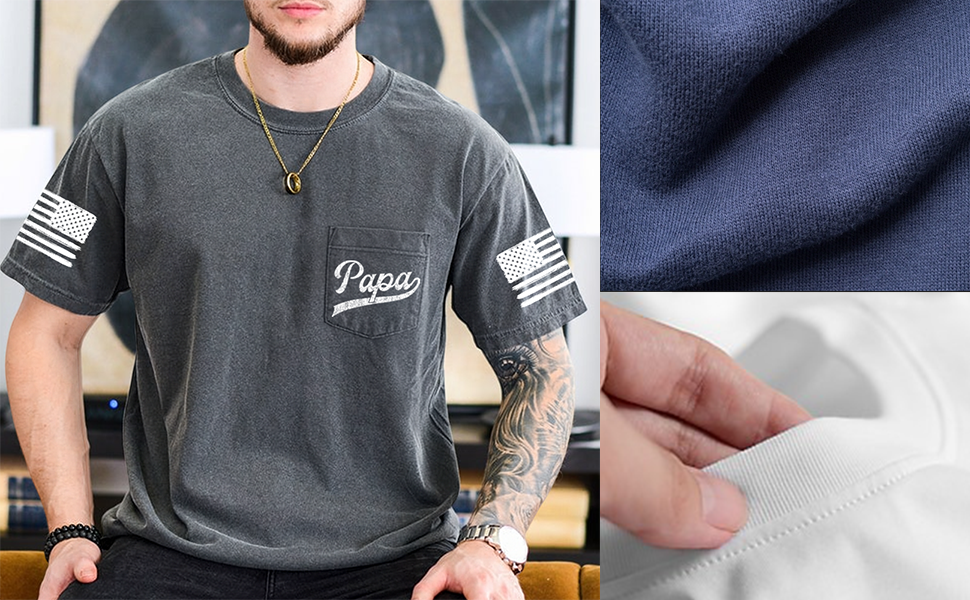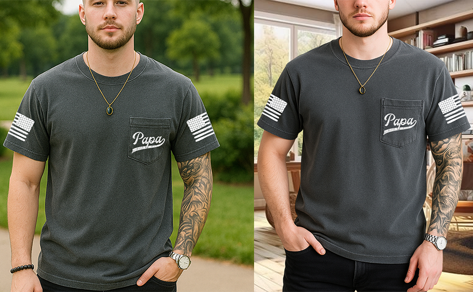 💝 Papa Pocket Shirt with Flag on Sleeve For Grandpa, Dad, Papa, Daddy, Father on birthdays, Valentines, Mother's Day, Father's Day, Thanksgiving, Christmas, Anniversary,...