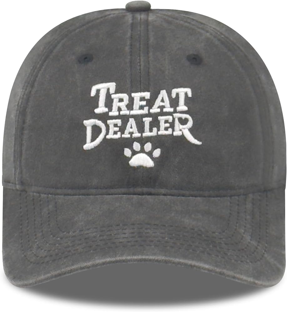 Funny Dog Lover Style – Classic embroidered baseball hat with the “Treat Dealer” design, perfect for dog moms, dog dads, and pet lovers.