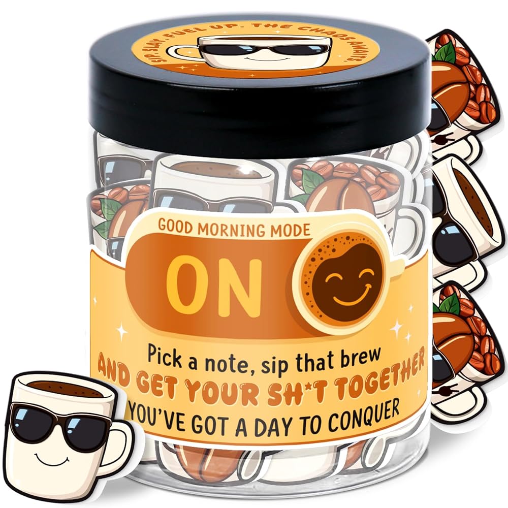 Start your day the right way—with caffeine and confidence! This hilarious coffee affirmation jar is packed with 60 daily notes to kickstart your mornings with sass and smiles.
