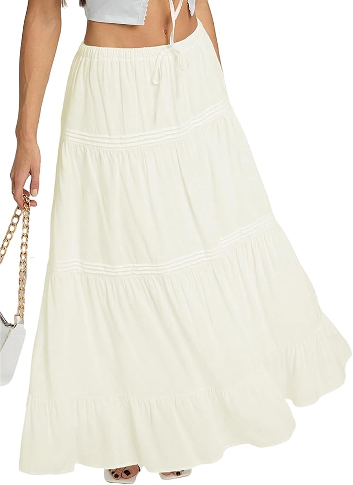 Maxi Skirts for Women Summer Spring 2026 Pleated High Waisted Flowly Skirt Tiered Casual Boho Beach Vacation Clothes