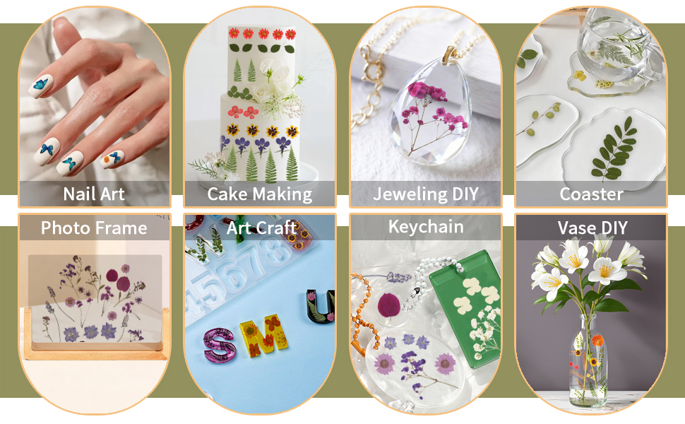 🌼Widely Applicable Scenarios: These dried pressed flowers are perfect for epoxy resin crafts, jewelry making, scrapbook making, frame decoration, handmade bookmarks, greeting cards, gift packaging, DIY phone cases, art paper making, and other floral crafts. They add unique elements to any creation.