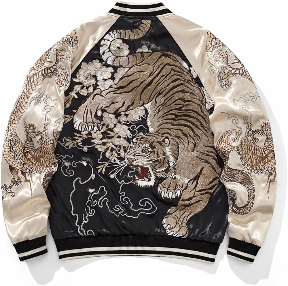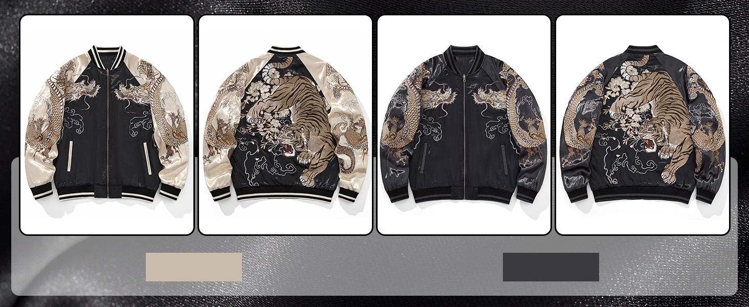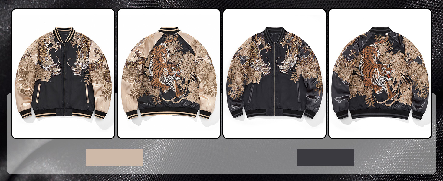 Windproof & Stay Warm: The cuffs and hem of this sukajan jacket are ribbed, making them more airtight and elastic than traditional straight cuffs, and effectively blocking cold wind from entering the cuffs and hem, making it ideal for spring, fall, or cycling