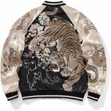 Exquisite Embroidery Design: This jacket embroiders an entire Eastern mythos onto its satin, creating a complete energy field. The tiger on the back symbolizes fearless courage, while the twin Dragons coiling around the sleeves represent authority, and ascension. Their potent energy merges with the auspicious clouds on the jacket, signifying soaring luck and limitless potential. The vibrant florals throughout infuse this power with vitality and honor. More than a jacket, it's a wearable art