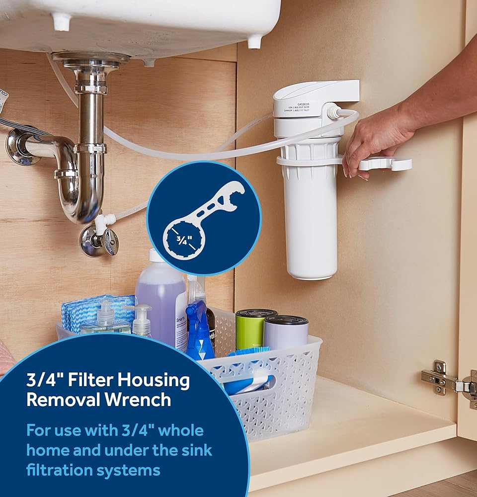 The GE Universal Carbon Filter Wrench fits a wide variety of standard whole home and drinking water filtration systems. Allows easy filter replacement and is necessary to provide fresh, filtered water on demand.