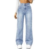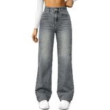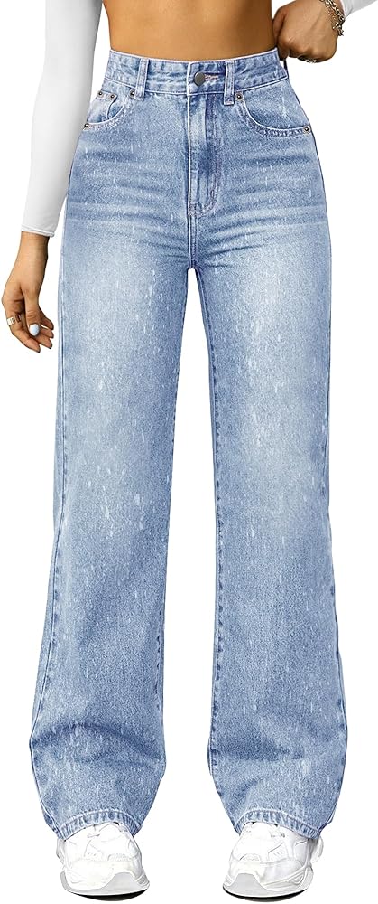 NOTE:The product size is measured manually and may have a discrepancy of 1-2 cm. Please noted that the size in the size chartis the size of the jean, not the body size.NOTE:Runs large – consider sizing down Stylish High-Rise Design: This pair of high-rise, straight-cut, wide-leg boyfriend jeans boasts a trendy high waist design, exuding a unique sense of fashion that positions you as a trendsetter.