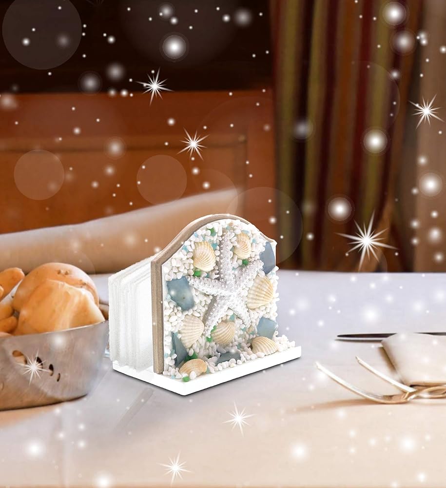 CoTa Global Nautical Napkin Holder with Oceanic Seashell and Starfish Decor - Handcrafted Tabletop Display Tissue Holder, Unique Ocean Themed Decor for Bathroom or Kitchen Accessories - Color May Vary