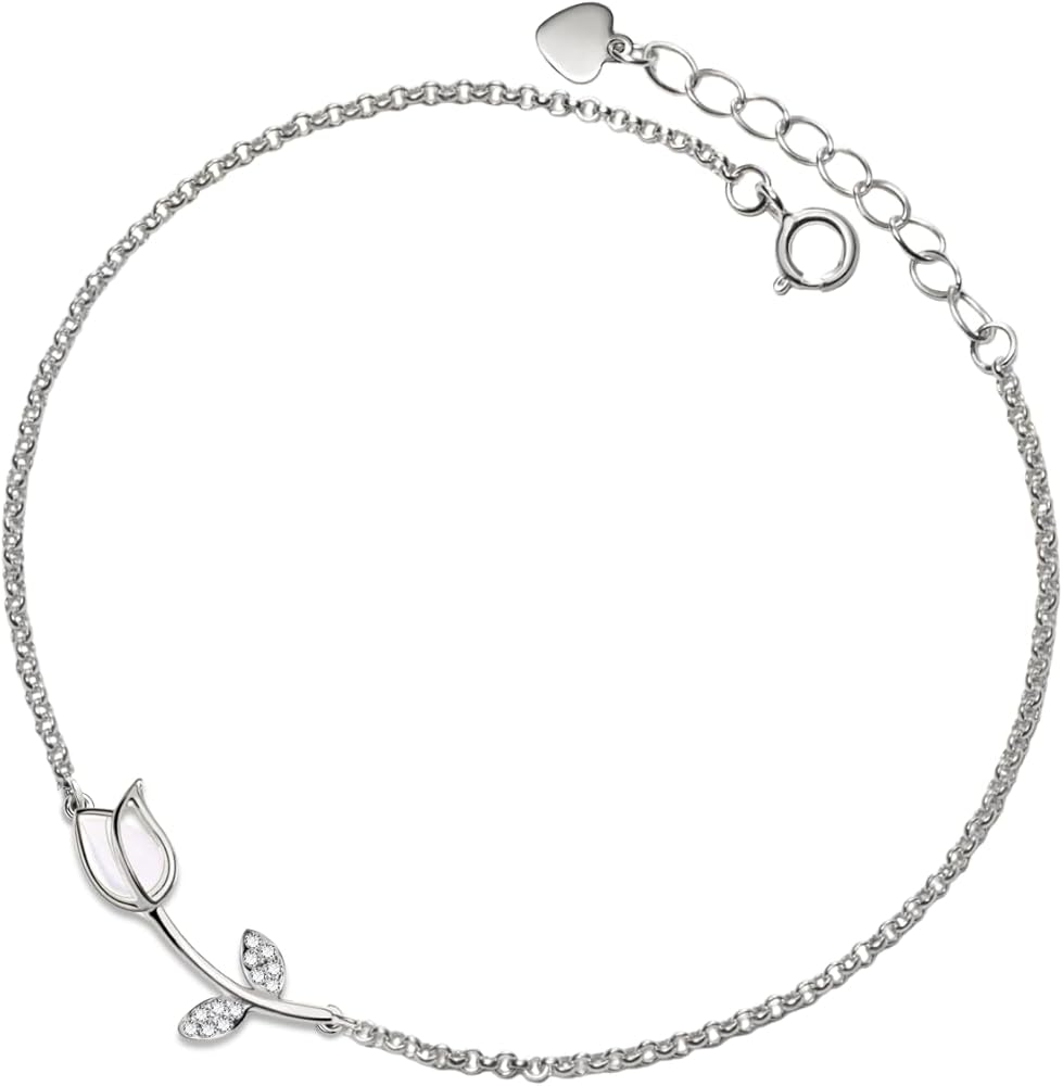 Waterproof Tulip Anklet: The dainty silver waterproof anklet for women features a cubic zirconia tulip flower charm. It can be worn alone or stackable with other ankle bracelets, easy to wear, simple and elegant, making your feet look more charming and beautiful.