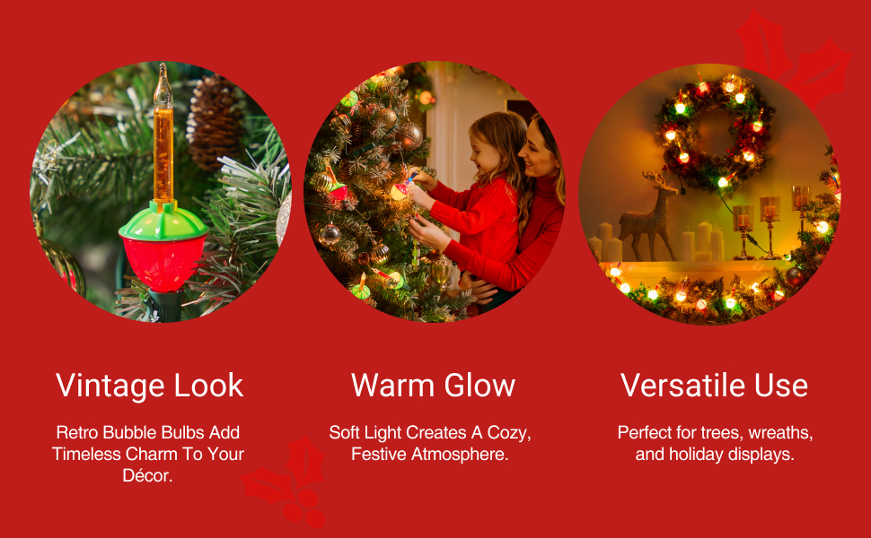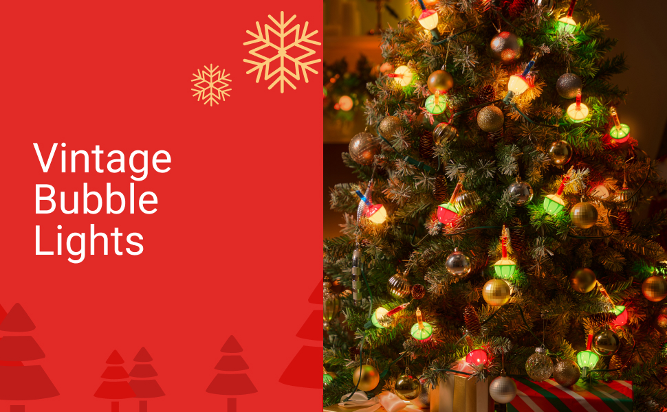 SUPER VALUE. Our unique-looking Christmas lights set is composed of 7-count Multicolor Christmas Bubble String Lights. It measures approximately at 7FT long with a bulb size of 1.86in*1.86in*5.39 in and 11 inches bulb intervals.