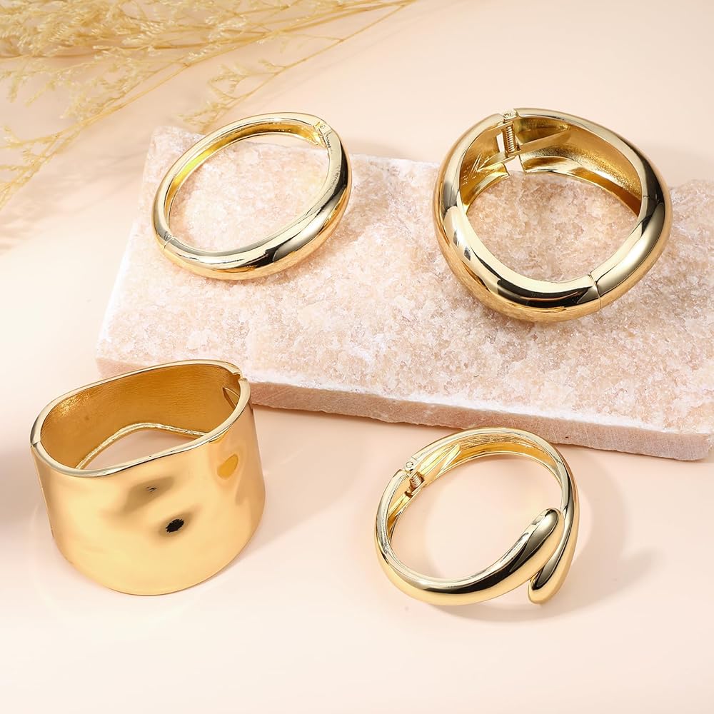 【Unique Design】Each silver arm cuff in this 4-piece set has a smooth, scratch-resistant finish. The mix of wide (chunky bangle bracelets for women) and slim styles offers edgy yet wearable contrast