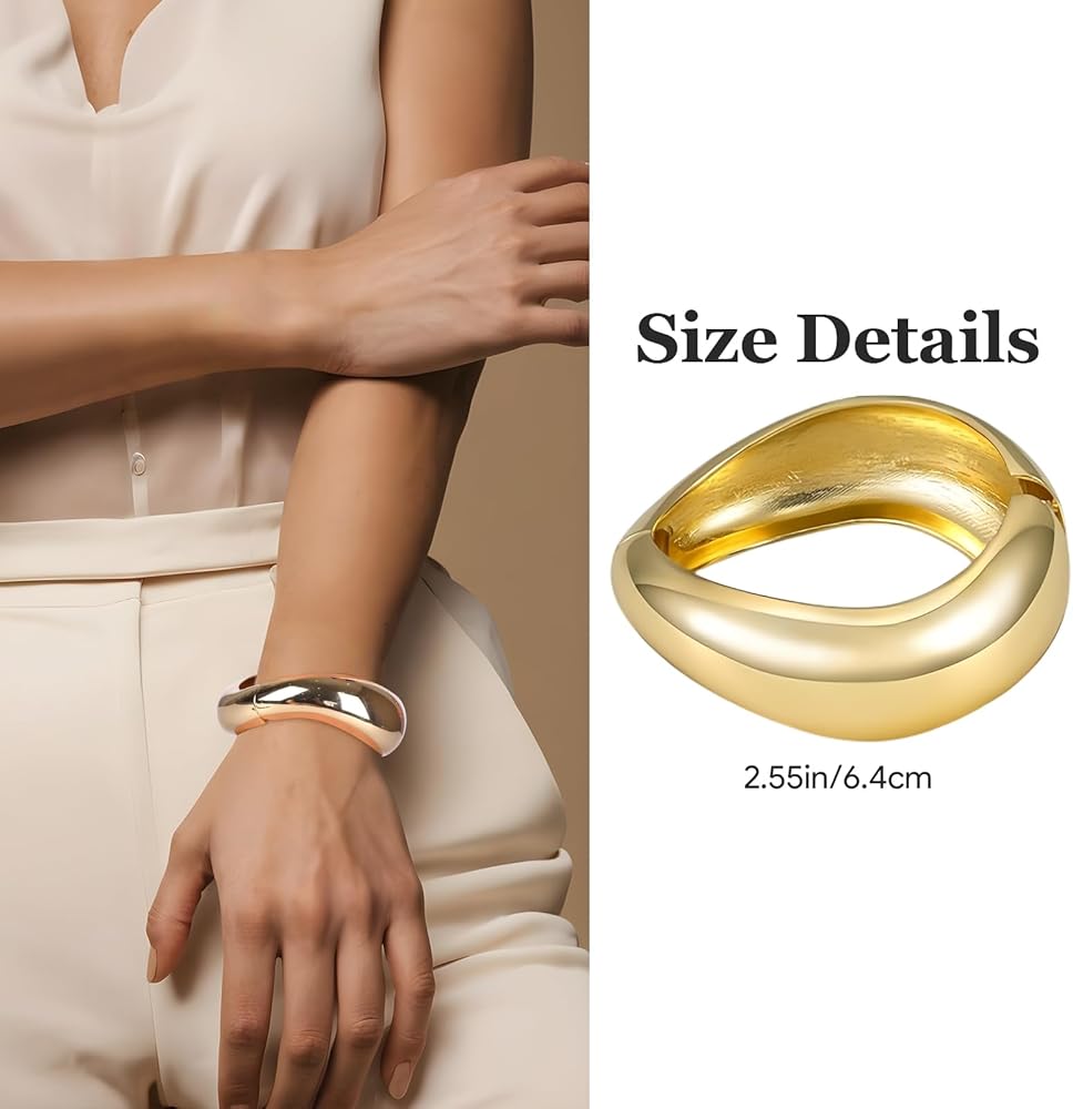 【Multi-Occasion Wear】These silver bangles for women transition seamlessly from daytime chic to evening glamour. The versatile chunky bracelets for women complement both casual and formal outfits