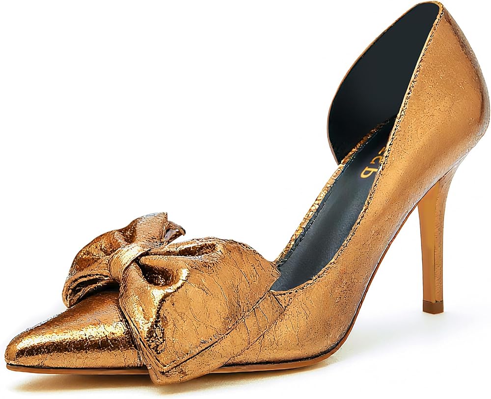 CHIC BOW HEELS PUMPS: The large delicate bow detail of the stiletto heels exude femininity and charm. The side cut-out design enhances breathability, prevents sweaty feet, and adds a sexy, modern style.