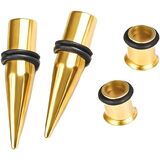 Transform your body piercing journey with this comprehensive ear gauge stretching kit. Crafted from premium 316L surgical steel, this set includes one pair of tapers and one pair of single flare tunnels in your chosen size. The tunnels feature a practical 1.6mm-10mm wearable length and come with secure O-rings to keep them firmly in place. Available in sizes ranging from 14G to 00G (10.0mm), these lightweight pieces are designed for a comfortable stretching experience. The single flare design makes these ideal for the stretching process, while the high-quality surgical steel construction offers durability and style. Each set includes two O-rings for secure wear, making these versatile accessories perfect for everyday use. The sleek, polished finish complements any style, making these an excellent choice for various occasions. Whether you're just starting your stretching journey or maintaining your current size, this kit provides the essential tools you need for a successful stretching experience.