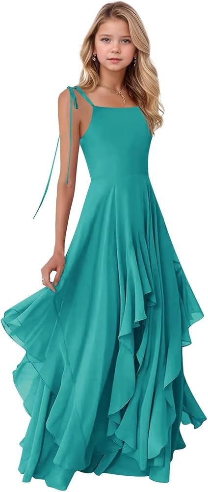 Features: The junior bridesmaid dress is made of chiffon. The upper body is designed with spaghetti strap. This is an elegant princess party maxi dress and teens' beauty wedding pageant dance gowns