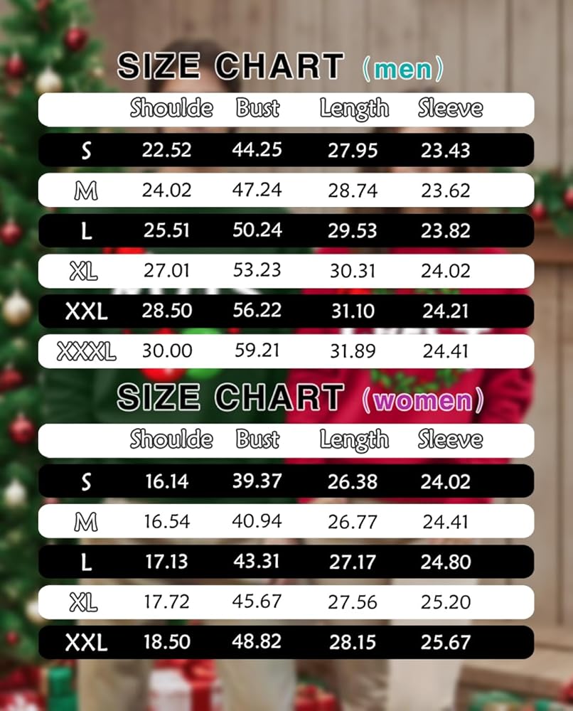 المناسبة: ملابس عيد الميلاد المضحكة للرجال والنساء، وسترات عيد الميلاد المضحكة للأزواج، وقمصان الأزواج المتطابقة مناسبة لحفلات عيد الميلاد، والعشاء العائلي، ونزهات المواعدة وما إلى ذلك. هدية مثالية لمطابقة الأزواج أو الأزواج في عيد الميلاد